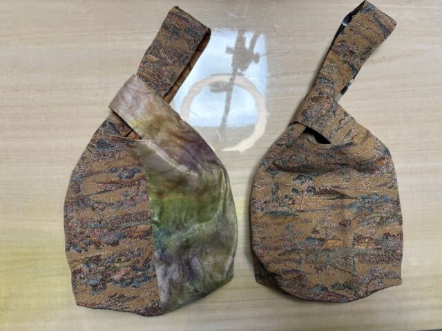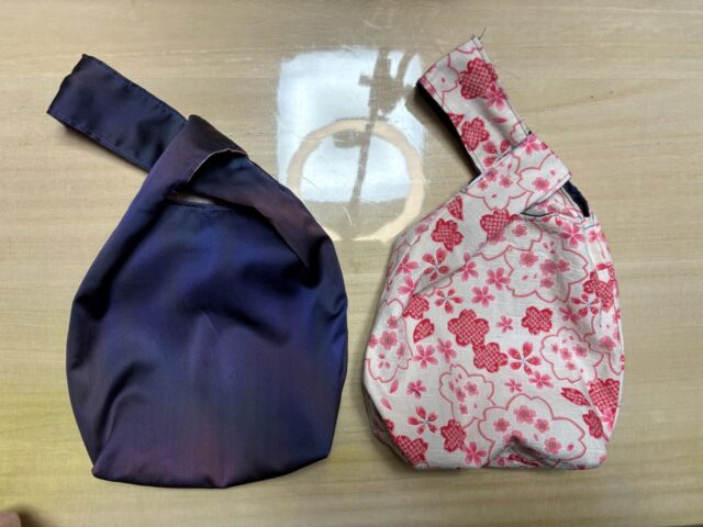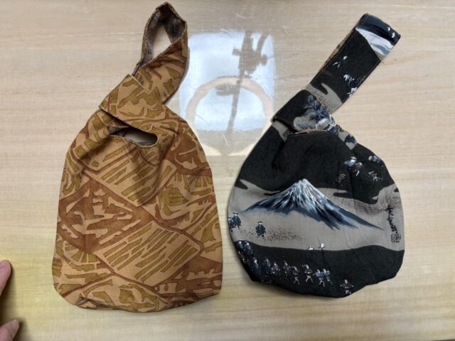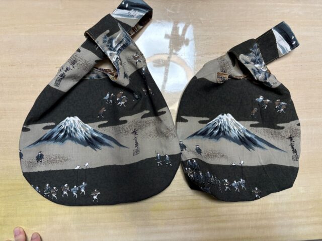 富士山柄のモスリンの長襦袢で作ったしじみバッグ2点