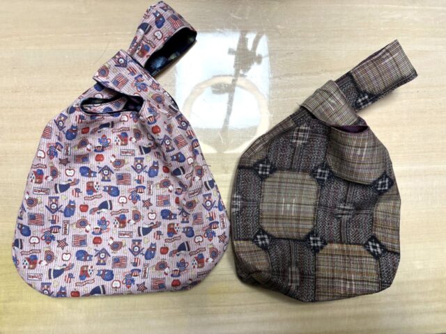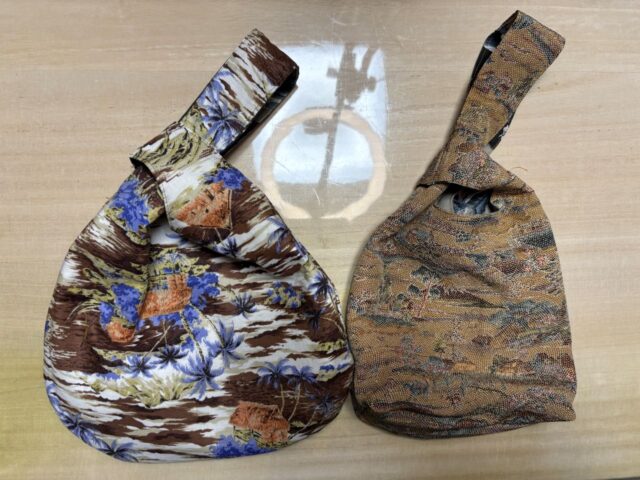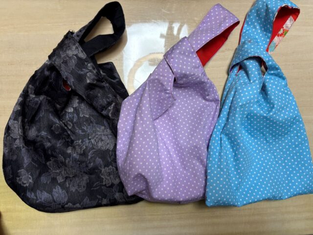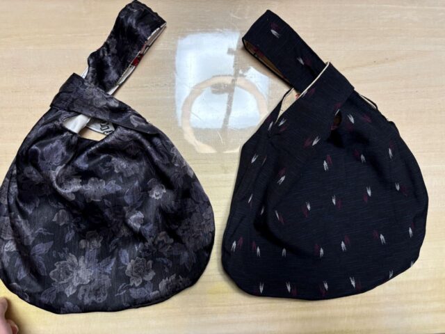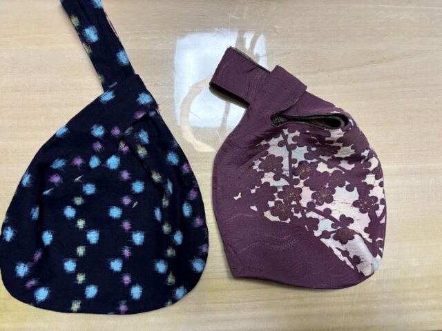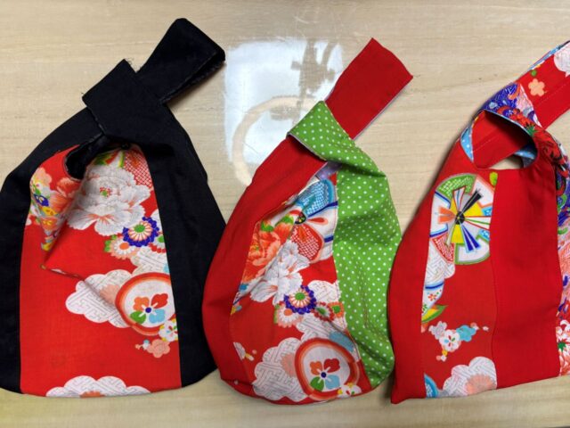 これらの着物の生地にシーチングやポリエステル、様々な木綿の生地などを使って作った初心者にも簡単なリバーシブルのしじみバッグを通して、生地の特徴や、接着芯を張ったもの、洗濯の時の注意点などを解説します。