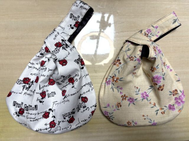 バラの花柄と和風の花柄のしじみバッグ