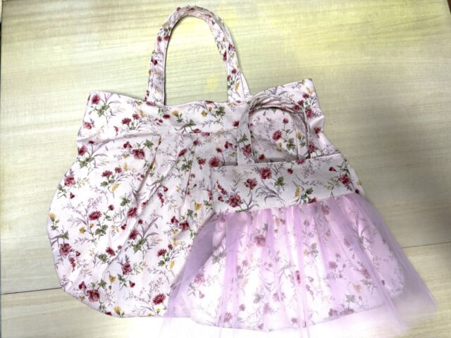 花柄の生地だけで仕上げたり、チュールをプラスしてチュチュ風にしたりと、作る楽しさが広がります。