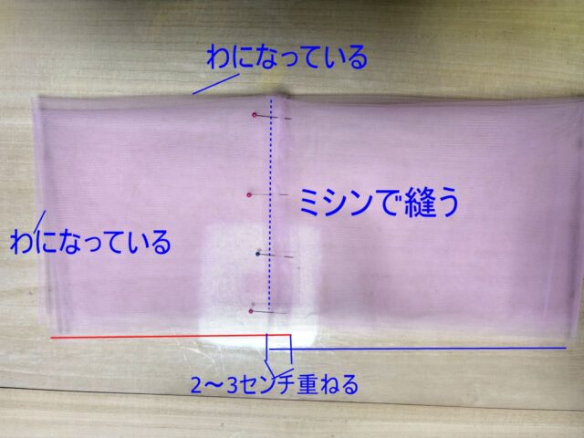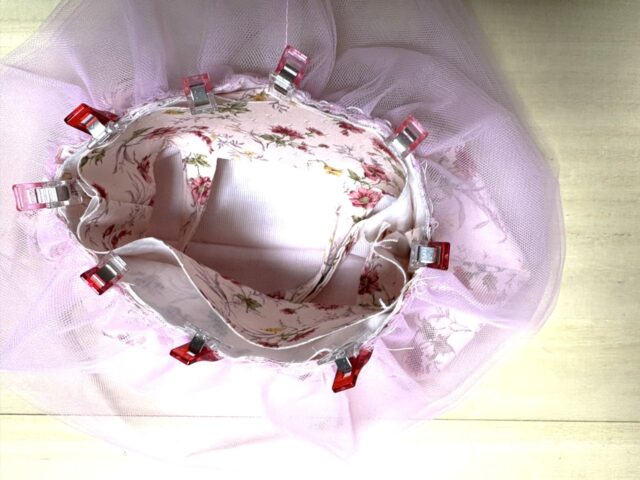 子供用は、袋布部分にソフトチュールを挟みますので、ママ用の作り方と手順が違います。