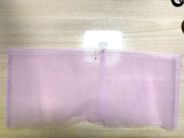 ソフトチュールは、細かいあみめ状なので、ギャザーを寄せるために縫っていくときのはり目は細かいとうまくいきません。