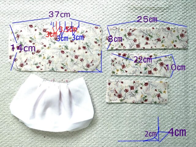 ・チュチュ風のバランスにするので口布の長さはママのバッグ より長めにしてスカート(袋布)部分とのバランスをとる